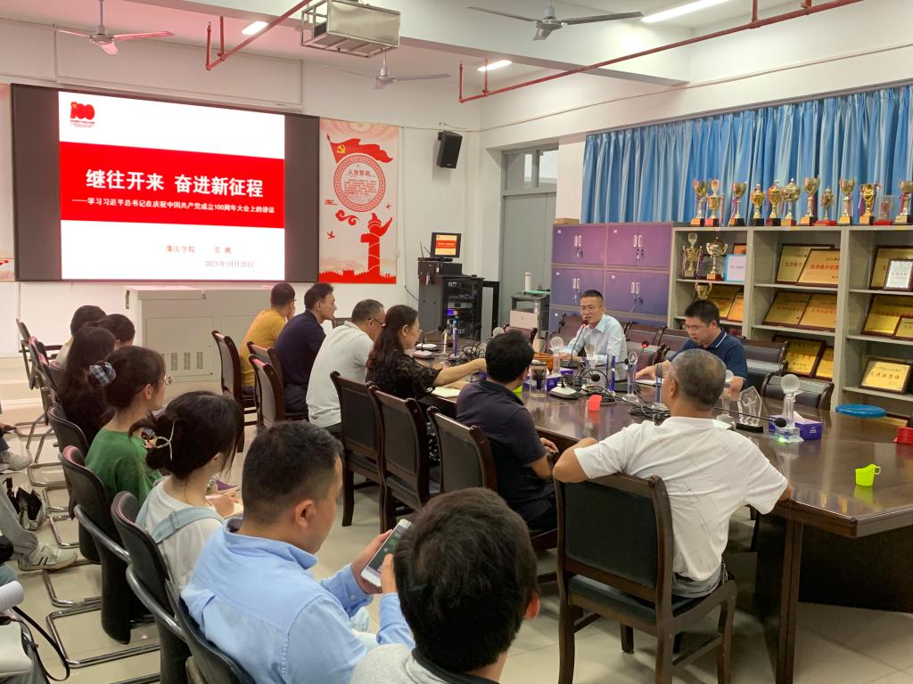 为深入学习贯彻习近平总书记“七一”重要讲话精神,扎实推进公司党史学习教育走深走实,10月20日下午,太阳成tyc122cc召开学习贯彻习近平总书记“七一”重要讲话精神专题宣讲报告会,邀请公司党史学习教育宣讲团成员常铫老师来院作专题报告,报告会由公司党委书记李湘同志主持,公司师生党员、入党积极分子一同参会学习。