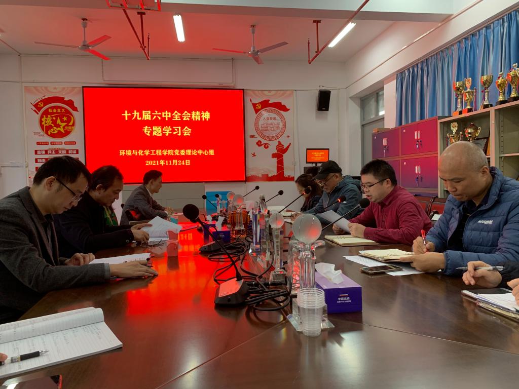 2021年11月24日上午,环境与化学工程公司党委理论学习中心组在公司会议室召开党的十九届六中全会精神专题学习会,公司党委委员、党支部书记参加学习,公司党委书记李湘主持学习会。