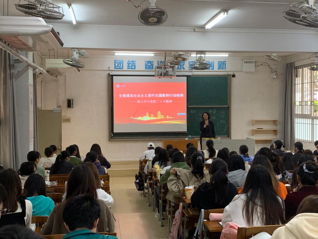 郝向英则将党的二十大报告中“实施科教兴国战略,强化现代化建设人才支撑”作为主要内容。她说,十年来,中国特色社会主义教育发展道路越走越宽广,已经全面进入高质量发展新阶段,青年受教育水平大幅提升,就业机会更加充分多样。她希望同学们要珍惜成长发展的优渥条件,能吃苦、勇担当,在专业知识的学习过程中磨炼意志、增长本领,不断塑造和积攒为实现中华民族伟大复兴中国梦奋勇争先的青春力量。