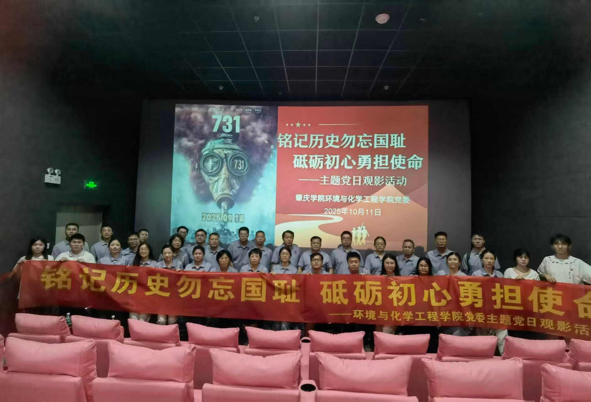 为持续深化党史学习教育成效,筑牢师生党员理想信念之基,10月11日,环境与化学工程公司党委精心策划组织师生党员代表开展"铭记历史勿忘国耻·砥砺初心勇担使命"主题党日观影活动,集体观看爱国主义教育题材电影《731》。