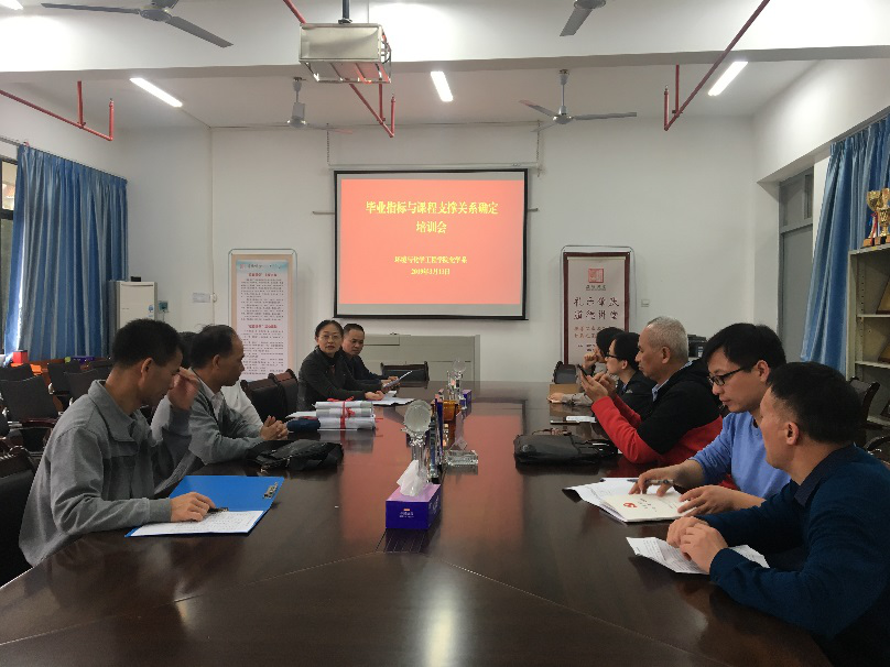 2019.3.13吴燕妮教授和化学系教师在理工大楼218召开了“毕业指标与课程支持关系确定培训会”,和老师们介绍了毕业指标与课程支持关系确定的重要性和意义,并组织老师开展了相关工作,化学专业师范认证工作在逐步推进中。