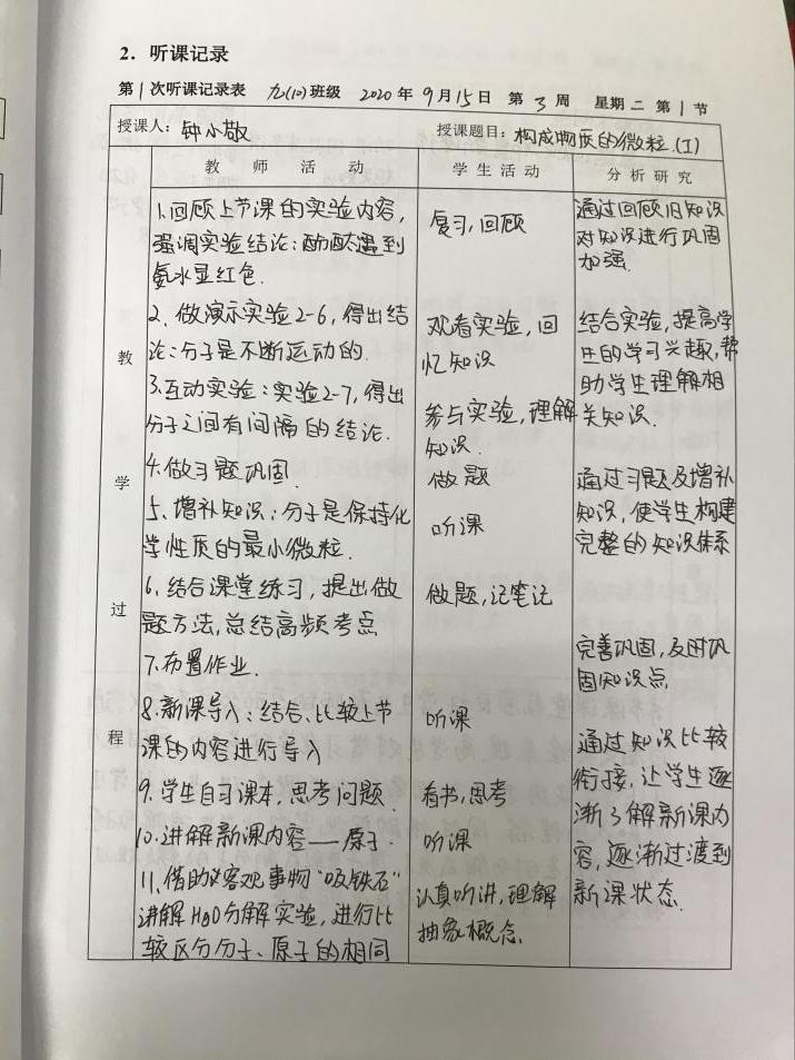 2020年9月23日,太阳成tyc122cc实习指导老师吴文胜莅临肇庆市第一中学(初中部)察看部分2017级实习生实习情况。