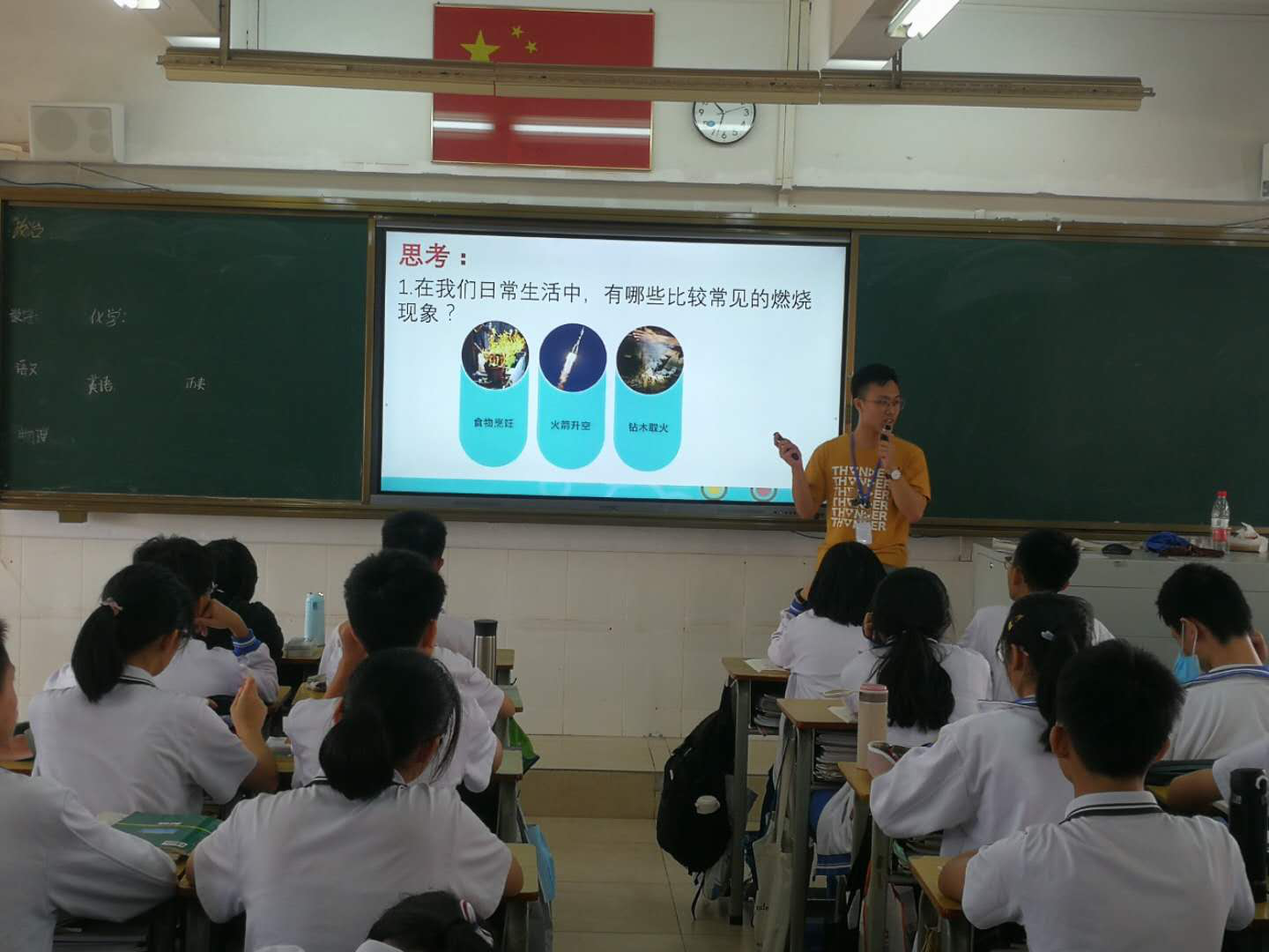 2020年10月12日上午,太阳成tyc122cc实习指导老师吴文胜深入肇庆市第一中学初三化学课堂,见证了2017级化学专业实习生游柔珊和李志安两位同学的首次课堂表现。