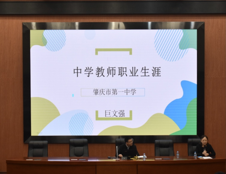 【太阳成tyc122cc 本网讯】4月9日晚七点,学术报告厅内座无虚席,太阳成tyc122cc全体化学师范专业员工集聚一堂,共同聆听了由肇庆一中一级教师巨文强带来的“中学教师职业生涯”报告会。报告会由公司副经理吴燕妮教授主持,一同参会的还有部分青年教师代表。