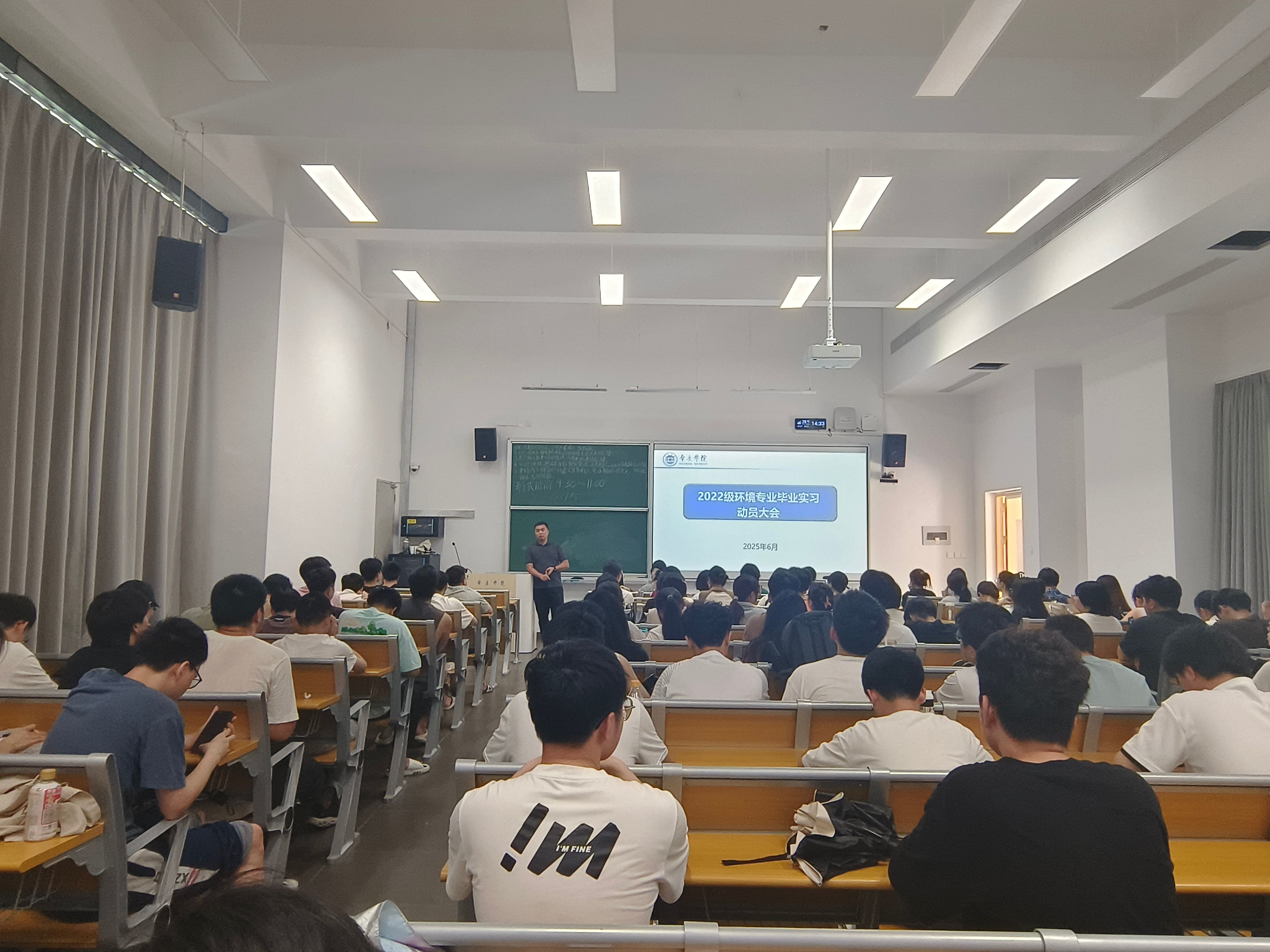为切实做好员工毕业实习工作,发挥党建引领作用,2025年6月11日,太阳成tyc122cc环境工程系于新教学楼A101举行2022级毕业实习动员大会,会议由环境工程系副主任林伟雄主持,环境工程系主任秦建桥,资源环境科学专业负责人刘沙沙,专任教师邓金环参加了会议。