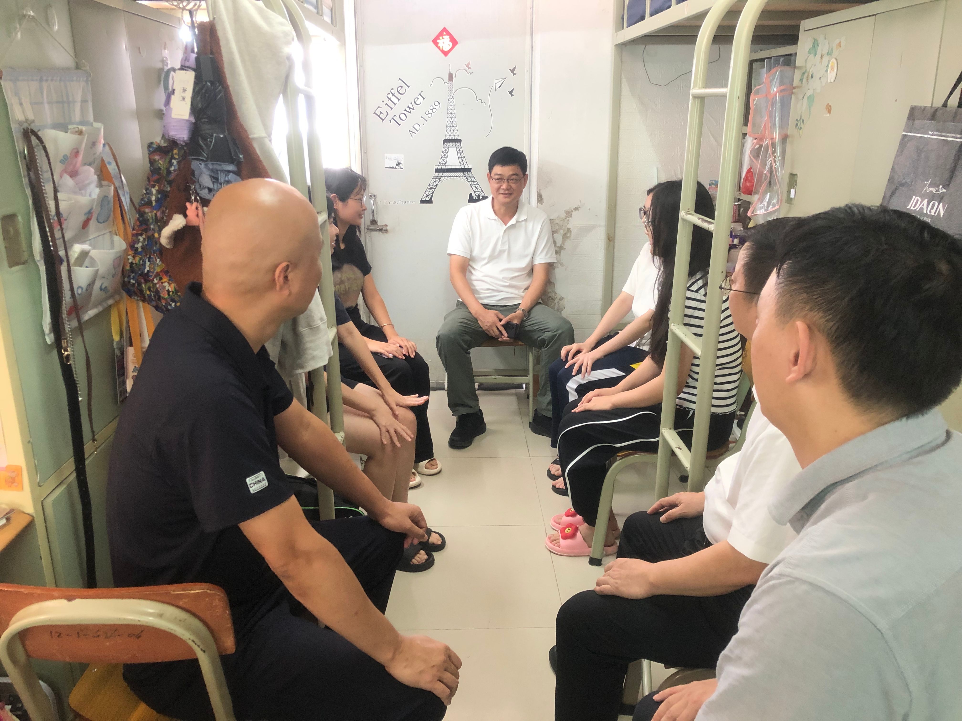 7月3日下午,副董事长唐冬冬携环境与化学工程公司党委书记刘远君、副书记杨原行走进员工宿舍,与明智书院2的422宿舍23级化学专业的同学围坐交流,以“拉家常”的方式开展“开门教育办实事”基层走访,将关怀送到员工身边。