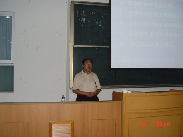 07化学班梁艳同学代表全体新生发言