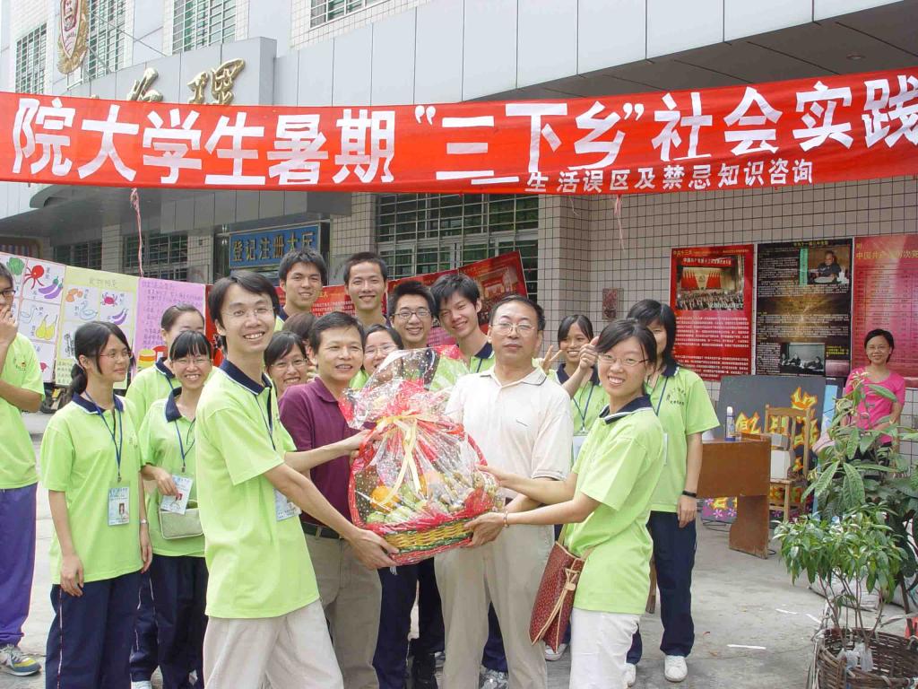7月12日,带队老师和队员们早早便开始前往这次“三下乡”的目的地——肇庆市鼎湖区广利镇。虽然初到这个镇,但面对村民们的热情接待,队员们很快就把羞涩抛在脑后,和他们热络起来。在对这个镇有了初步了解之后,队员们很快就投入原定的工作计划之中,他们17人共分为四组,每组就一个主题进行调查和研究,希望最后能提出可以促进当地发展的意见和建议,这四个主题分别关于淡水池塘养殖、食品安全、消防设备安全和交通状况。