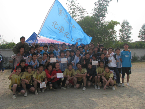 第二场是05代表队与08精化队之间的冠军争夺赛。随着一声哨响,比赛开始,场边啦啦队的尖叫声喝彩声此起彼伏。上半场05代表队的进攻成压倒趋势,屡次在精化队的门前制造险情,作为师弟的08精化队在05师兄们面前毫不示弱,奋力反攻。开场仅十分钟,精化队抓住一次反攻机会,3号钟利华直入禁区,一脚破门, 08精化队领队以领先一分的优势结束了上半场。下半场两队一直处于僵持状态。05代表队战术应用得当,凭借着扎实的脚下基本功,硬把精化队的进攻截断在禁区外。05代表队虽获得数个角球,却都被精化队的守门员稳稳抱入怀中或扑出。在下半场结束前五分钟,比赛进行到白热化阶段,代表队的10号郑新宏在禁区前用力抽射,球穿过防线,破门而入。1:1的平局一直持续到下半场结束。比赛最后,05代表队以5:4的总比分赢得冠军,08精化队获得第二名。