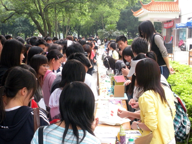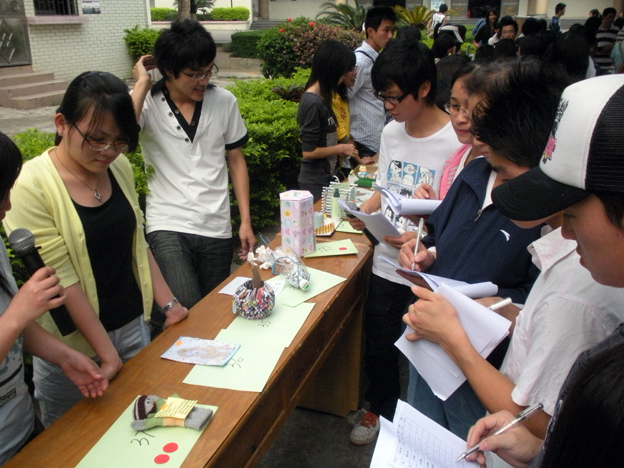 4月11日下午,化学楼前的过道临时摆设的展示台前簇拥了一大批观众。原来,由公司科创部、生命科学公司学术部以及生活部联合举办的公司第三届“废品资源化”大赛正在火热进行中。只见桌面上整齐地展示着各种各样的手工作品,吸引了大批同学的围观。