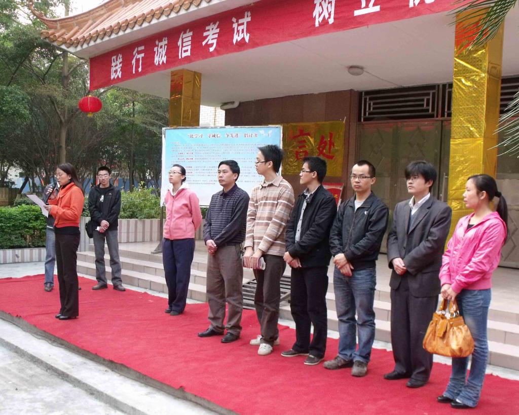 承诺仪式上,首先由员工会主席张植嘉同学代表各先锋队及员工机构向全院员工提出在期末考试中要做到“比学习、守诚信、争先进”的倡议,鼓励同学们要认真落实复习工作,积极备考,诚信考试。班集体代表龙标、员工代表金秀曼先后发言,皆表示要响应倡导,严格要求自己,诚实守信,杜绝作弊。最后,陈玉华副书记强调各班党员、员工干部要做好模范带头作用,督促自己,督促同学,携手共进,实事求是考试,争取佳绩。