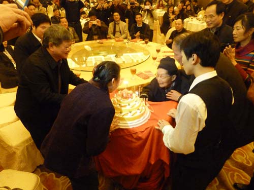 晚上7时,一个动人的场面出现了,在闪闪的烛光下,生日蛋糕被徐徐推到李启清教授面前,这时,出席活动的领导和嘉宾一起为李老唱起了生日歌,表达对老人的美好祝愿。歌声、掌声彼此汇成了祝福交响曲,大堂内满溢着感恩和祝福,弥漫着几十载悠悠师生情。