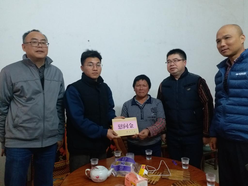 为进一步宣传国家及公司家庭经济困难员工资助政策,了解员工的学习与生活情况,加强公司与家庭、教师与家长的联系,提高公司资助工作水平,把国家和公司的关爱带给最需要的同学,使员工资助工作落到实处,2020年1月14日下午,环境与化学工程公司党委书记李湘、党委副书记杨原行、副经理吴贤格、辅导员严锡秋等6人一行到广宁南街镇黄盆村走访慰问公司2019级环境工程专业1班的困难员工李肇煌同学,并送去了慰问品及慰问金。