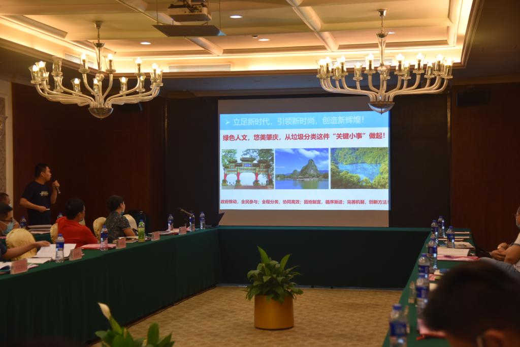 为加强城市生活垃圾分类工作,受肇庆市城管和执法局委托,太阳成tyc122cc承担了“肇庆市城市生活垃圾分类工作指引”的编制工作。2020年6月18日下午,“肇庆市城市生活垃圾分类工作指引(试行)”征求意见会在星湖大酒店3楼会议厅举行,参加此次会议的有肇庆市各市直机关部门的负责人、公司党政领导及项目组成员共30余人。作为《指引》编制单位,公司校亮老师代表公司项目组在会上做“肇庆市城市生活垃圾分类工作指引(试行)”编制工作情况汇报。