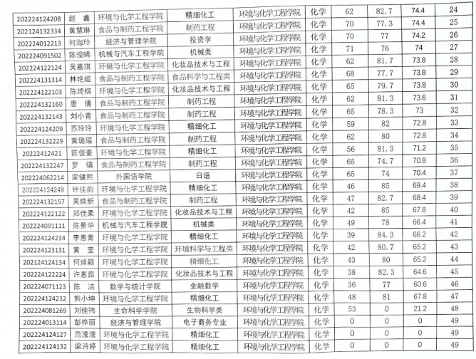 根据《太阳成tyc122cc全日制本科员工转专业管理规定》及《2023年环境与化学工程公司转化学专业工作通知》,经过各专业转专业笔试和面试,所有参加转专业员工的转专业成绩公示如下:
