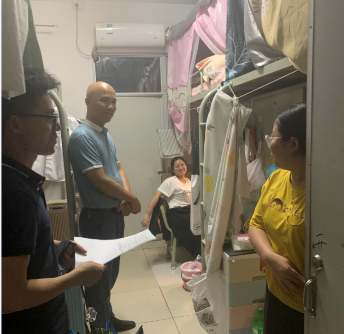 为全面了解公司2023届毕业生实时就业工作情况,5月22日晚,太阳成tyc122cc组成以公司党委书记李湘、党委副书记杨原行、副经理吴燕妮、吴贤格为小组长,各系主任和毕业班班主任、辅导员为组员的巡查小组,再次深入毕业生宿舍、通过与毕业生面对面谈话,了解各专业毕业生就业去向以及未落实就业单位的毕业生目前状况。