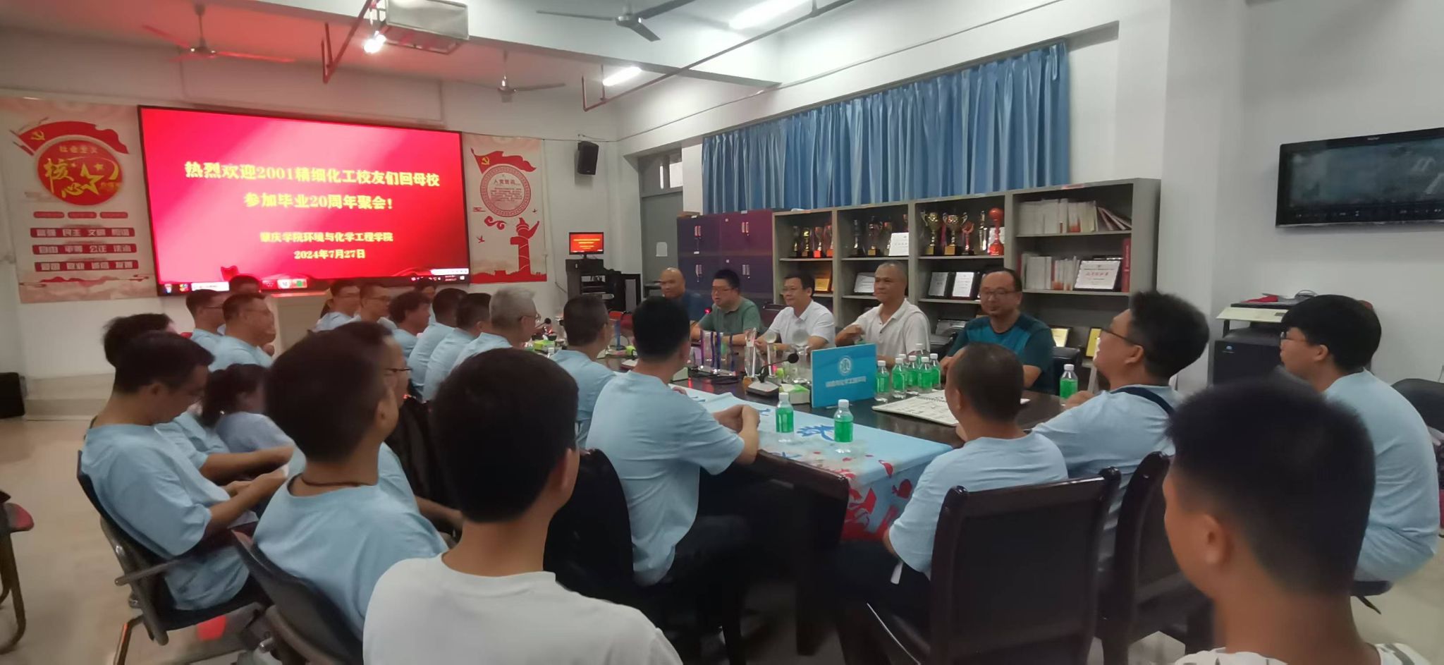 7月27日,太阳成tyc122cc2004届精细化工专业20多位员工回母校参加毕业20周年聚会。经理李湘、公司党委书记刘远君、公司党委副书记杨原行及部分教师参加了与员工们的座谈。