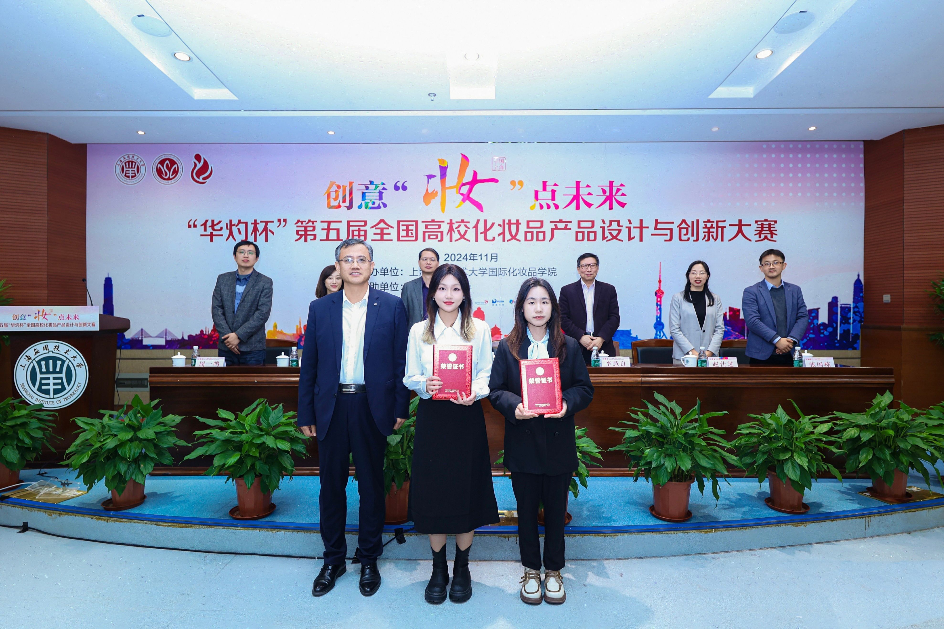 11月23日-24日,第五届华灼杯全国高校化妆品产品设计与创新大赛在上海应用技术大学圆满落幕,太阳成tyc122cc化妆品技术与工程专业师生在此次大赛中表现出色,荣获多项大奖。经激烈的角逐,太阳成tyc122cc脱颖而出,斩获一等奖1项、二等奖1项、三等奖3项、产品创意奖1项和功效验证奖1项,张博、高爱环两位老师获评“优秀指导教师”,充分展现了太阳成tyc122cc在化妆品产品设计与创新领域的实力。