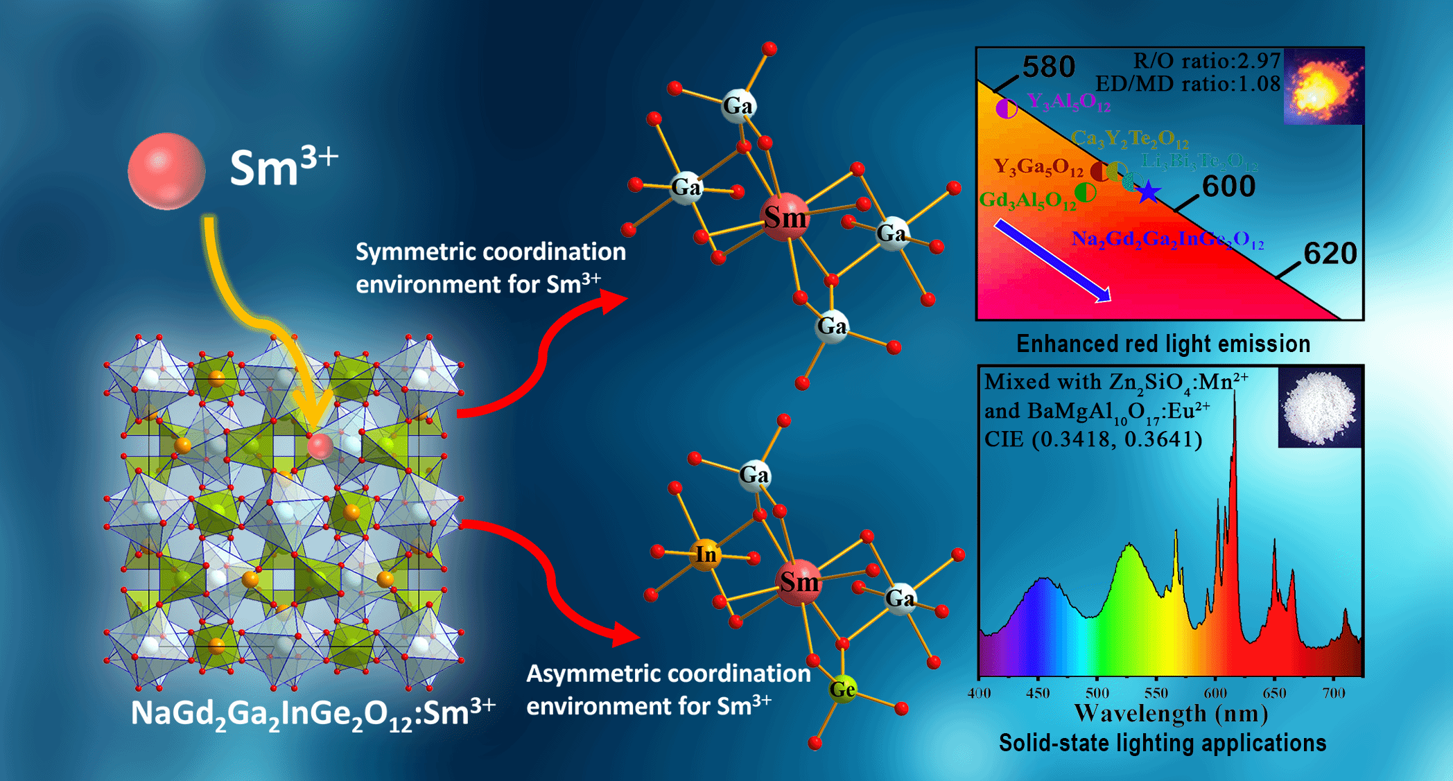 近日,公司“新能源与催化创新科研团队”在自然指数期刊《Inorganic Chemistry》(ACS Inorganic Chemistry,中科院二区,JCR Q1)上发表了题为《Enlarging Environmental Asymmetry by the Site Tailoring to Enhance Luminescence Properties of Sm3+ in the (Gd,Na)3(Ga,In)2(Ga,Ge)3O12 Garnet》的研究论文(DOI: 10.1021/acs.inorgchem.5c00549)。该论文第一作者为公司冯嘉俊老师,通讯作者为广东省科公司资源综合利用与稀土开发研究所李俊豪副研究员,太阳成tyc122cc为第一单位完成单位。