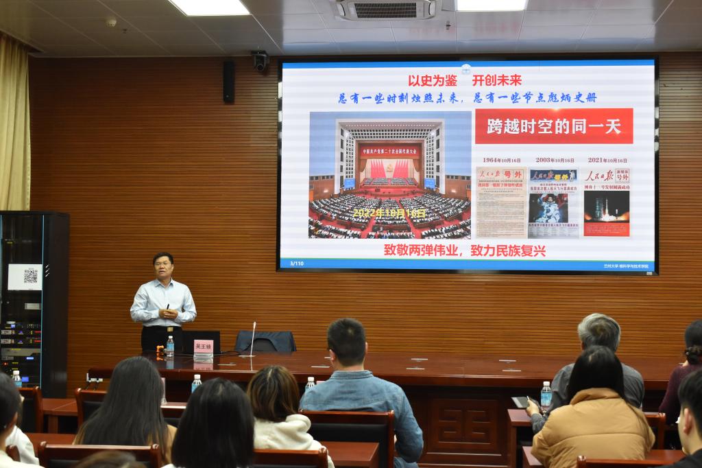 会上,吴王锁教授从党的二十大召开时间与我国第一颗原子弹爆炸日期相同引出话题。他详细地阐述核能由来、核能的军事和民用应用及从国家安全观的角度讲述核安全的重要性。重点介绍了错综复杂、稳中多变、日趋严峻的国际核形势,阐明了确保核安全,对保障政治安全、国土安全、军事安全、经济安全、社会安全等都具有重大作用。继而从决策指挥、政策法规、安全监管、技术支持、监测应急、废物处置等方面来介绍了我国的核安全体系,其中特别强调可怕的不是核辐射,而是核无知、核恐慌。我国正在持续不断的推进核安全监管体系和监管能力现代化建设,充分展现出新时代背景下的“以核为贵”,有力的维护了国家核安全,为全面建设社会主义现代化强国、实现中华民族伟大复兴提供坚强保障。